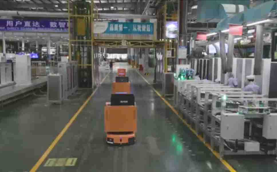 为车载冰箱物流配送打造的智能解决方案,,包含产中物流通过潜伏举升AMR搬运至线边,,产后成品物流智能仓储,,流程包含产中物流智能齐套入库,,,,线边安灯叫料AMR智能配送至线边,,,,成品入库、、出库,,通过无人堆高车机器人,,智能仓储管理替代人工作业管理,,,实现更高存储、、、更高效率、、更具柔性化的解决方案。。